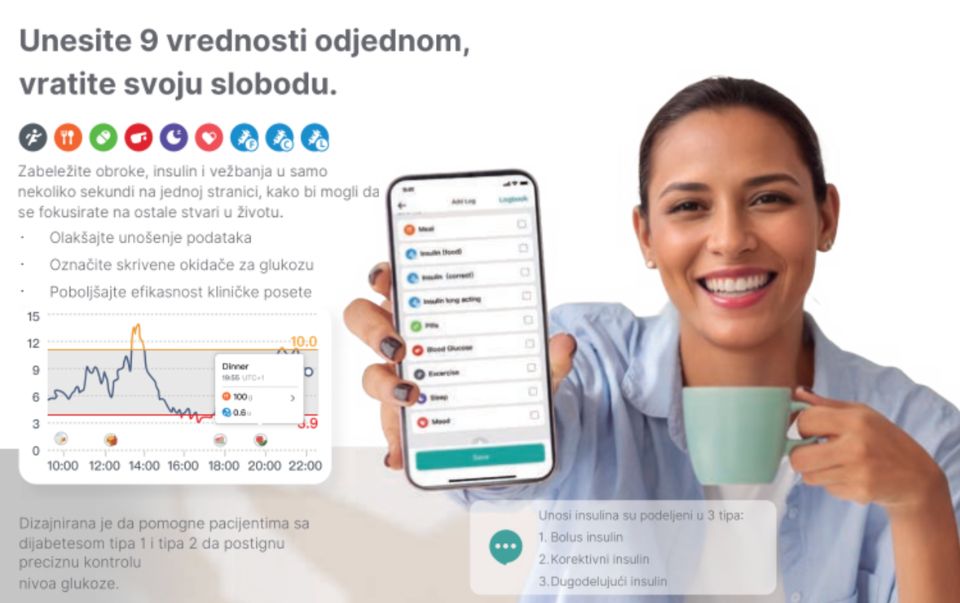 Nivo šećera u krvi pratite preko aplikacije na Vašem mobilnom telefonu.